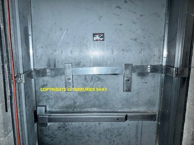 Veuillez suivre les rĂšgles de l’inspecteur. Certains inspecteurs tolĂšrent des serrures sur les portes de sortie et d’autres non. Consultez votre inspecteur pour connaĂźtre la meilleure solution afin de sĂ©curiser votre porte de sortie d’entrepĂŽt. Selon notre expĂ©rience, seule la barre amovible lĂ©gĂšre est permise.